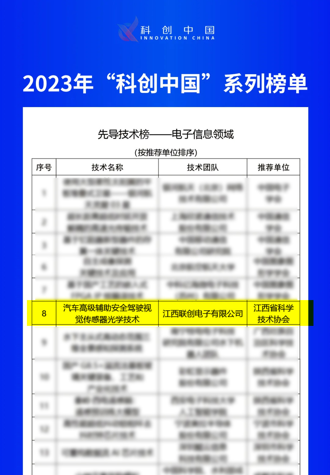 【概要描述】近日,中国科学技术协会公布了2023年度“科创中国”系列榜单遴选结果,江西乐鱼online(中国)有限公司的“汽车高级辅助安全驾驶视觉传感器光学技术”成功入选电子信息领域先导技术榜。